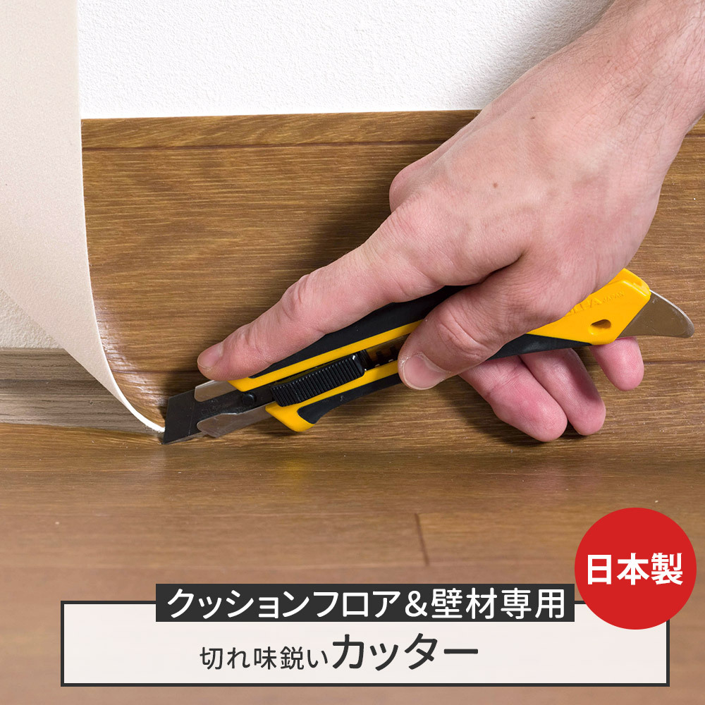クッションフロアシートや壁材など厚手のものをカットするのにおすすめのカッターナイフ [商品特徴] ・スピードブレードを装着 ・多用途に活躍する便利なツメ付き ・優れた握りやすさと耐久性 ・オートロック式 |