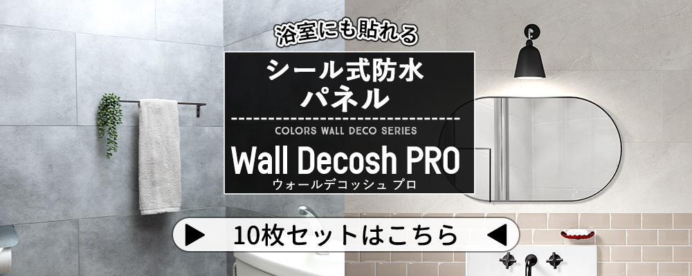 | ・厚みが違うため、こちらの「ウォールデコッシュプロ」と「ウォールデコッシュ」を一緒に使用することはできません。 ・当製品は屋内でご使用ください。 ・床材ではありませんので、床には使用しないでください。 ・完全防水仕様に施工する場合は、裏面の両面テープと、シリコンボンド、コーキングを合わせてご使用ください。 ・ウォールデコッシュプロにはビスの保持力がありません。シャワーホルダー、鏡、タオルハンガー等は下地材に確実に取り付けてください。 ・カットする際はカッターや切り口での怪我防止のため、作業手袋の着用をおすすめします。 ・パネルを縦に置いたり、はみ出した状態で重ね置きすると曲がりや反りが発生し、パネルが浮く原因になります。必ず施工前に平置きできっちり重ねた状態で時間をおき、自重でフラットになるようにしてください。 ・ウォールデコッシュは表面にUVコーディング処理を施しているため防カビの効果がありますが、カビの発生は建物の構造や室内環境に大きく影響されるため、この商品を使ったからカビが発生しないという訳ではありません。風通しを良くしたり、十分な換気を行なってください。 また、きちんと防水になる施工ができていない場合など、ウォールデコッシュの表面以外に湿気が付着したり、壁との間に湿気が入り込んでしまった場合もカビが発生する原因になります。 ・高温になるサウナ・ミストサウナへのご使用はできません。 ・60度以上の高温に長時間さらされると、変形・軟化・膨れ・変色・表面の割れが生じる恐れがあります。そのため、キッチンの調理器具周辺やコンロ近くなどの高温になる場所への施工は避けてください。 ・コンロ周りへの施工は熱による劣化の恐れがあるため、基本的にはおすすめしておりません。 設置される場合は、安全のためバーナーキャップより30cm、その他高温部から15cm以上の距離を必ず確保してください。 |