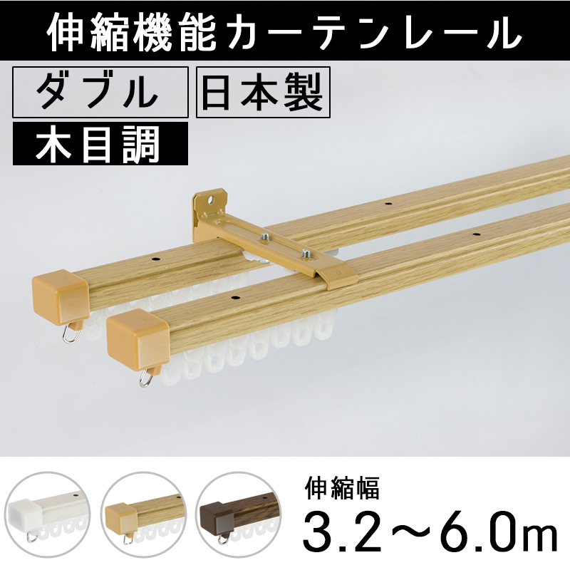 カーテンレール ダブル 4m 5m 6m 伸縮式 木目調 天井付け 正面付け 3.2〜6m 伸縮カーテンレール 取付簡単 H-N-0