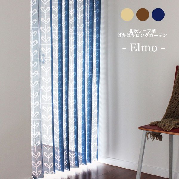 日の光にあたるとやさしい北欧風のリーフ柄が綺麗に浮き出る、ロング丈アコーディオン式レースカーテン【Elmo エルモ】。