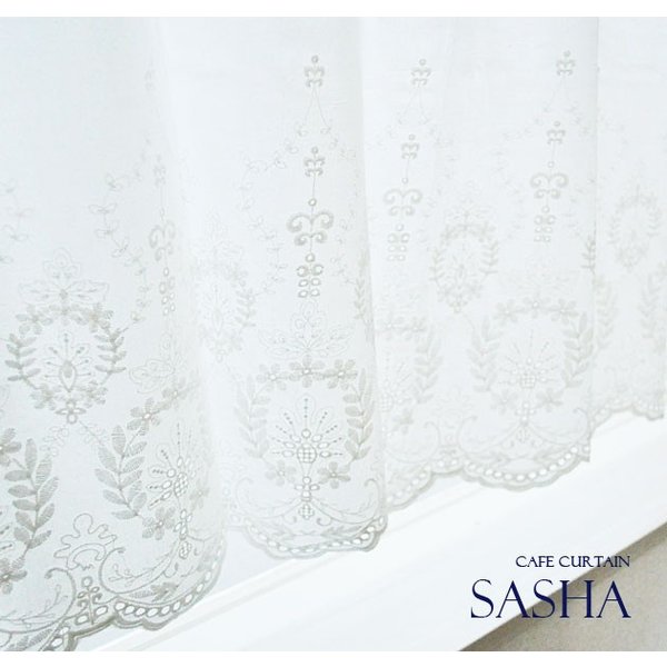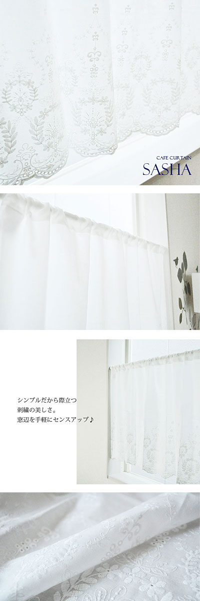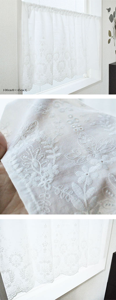 カフェカーテン 刺繍 北欧 シンプル 美しい コットン刺繍カフェカーテン【Sasha サーシャ】(100cm幅×45cm丈)