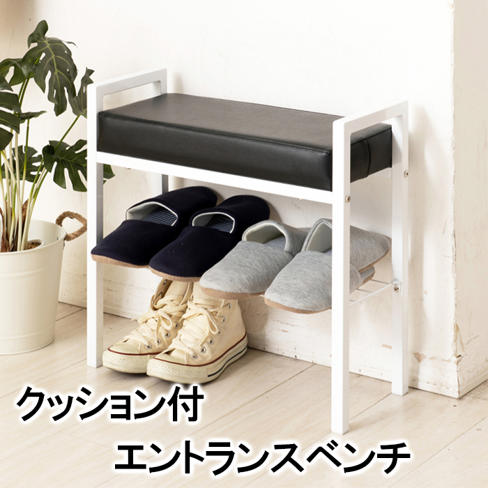 玄関スツール 手すり付き クッション座面 エントランスベンチ 幅50 収納棚