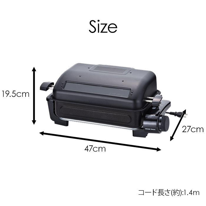 消臭フィルター付きで気になるニオイも軽減。30分タイマー付きで焼きすぎ防止にも便利。