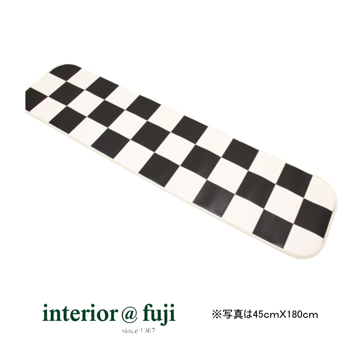 キッチンマット ガレージ タイル柄 倉庫 インテリア 白黒市松模様 東リ クッションフロア 約45cmX180cm