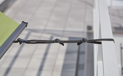 ■屋外 外付け ロールスクリーン ロールカーテン■メーカー:ニチベイ■商品名:ソヨカ■オプション部品ボトム固定ベルトセット■セット内容:ボトム固定ベルト(2本)、コードホルダー(2個)、コードホルダー固定ネジ(4本) ※手摺やウエイトに固定する場合に使用。
