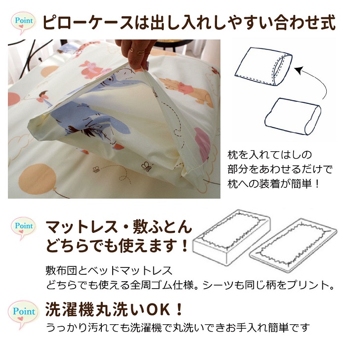 枕カバー、掛け布団カバー、ベッドカバー/敷き布団カバーの3点セットです。