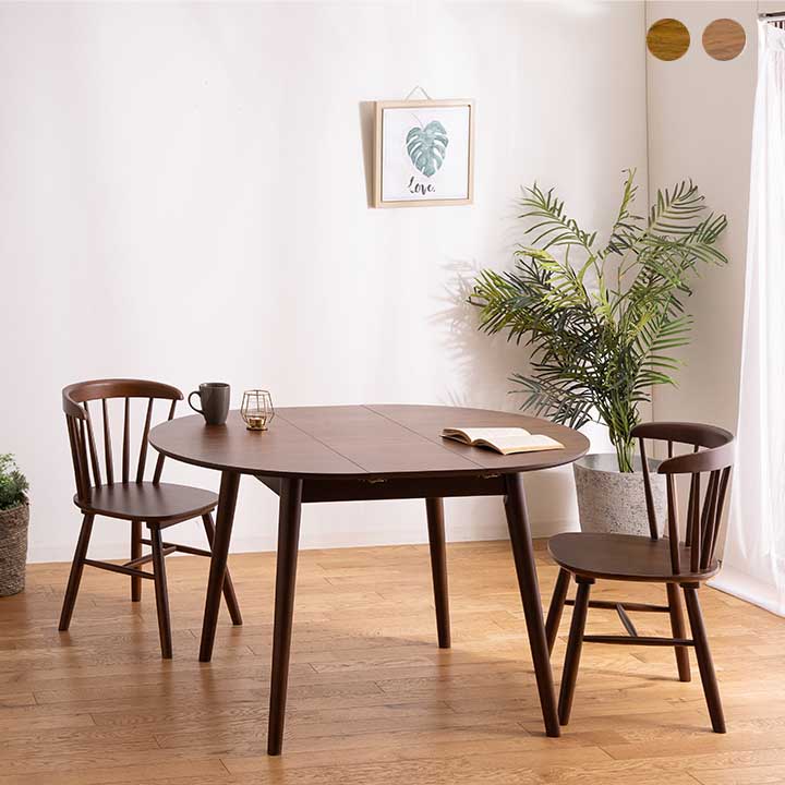 ダイニングセット 2人掛け 幅120cm 伸縮式 丸型 円形 北欧風 ナチュラル ダイニングテーブル ダイニングチェア 3点セット 90cm コンパクト 小スペース スぺパ