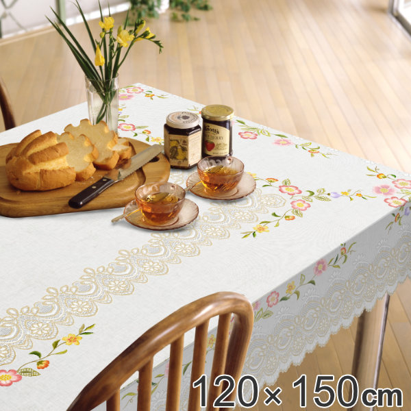 レース風のデザインで華やかで上品なテーブルクロス●プリントされたレース柄が上品なデザインのテーブルクロスです。