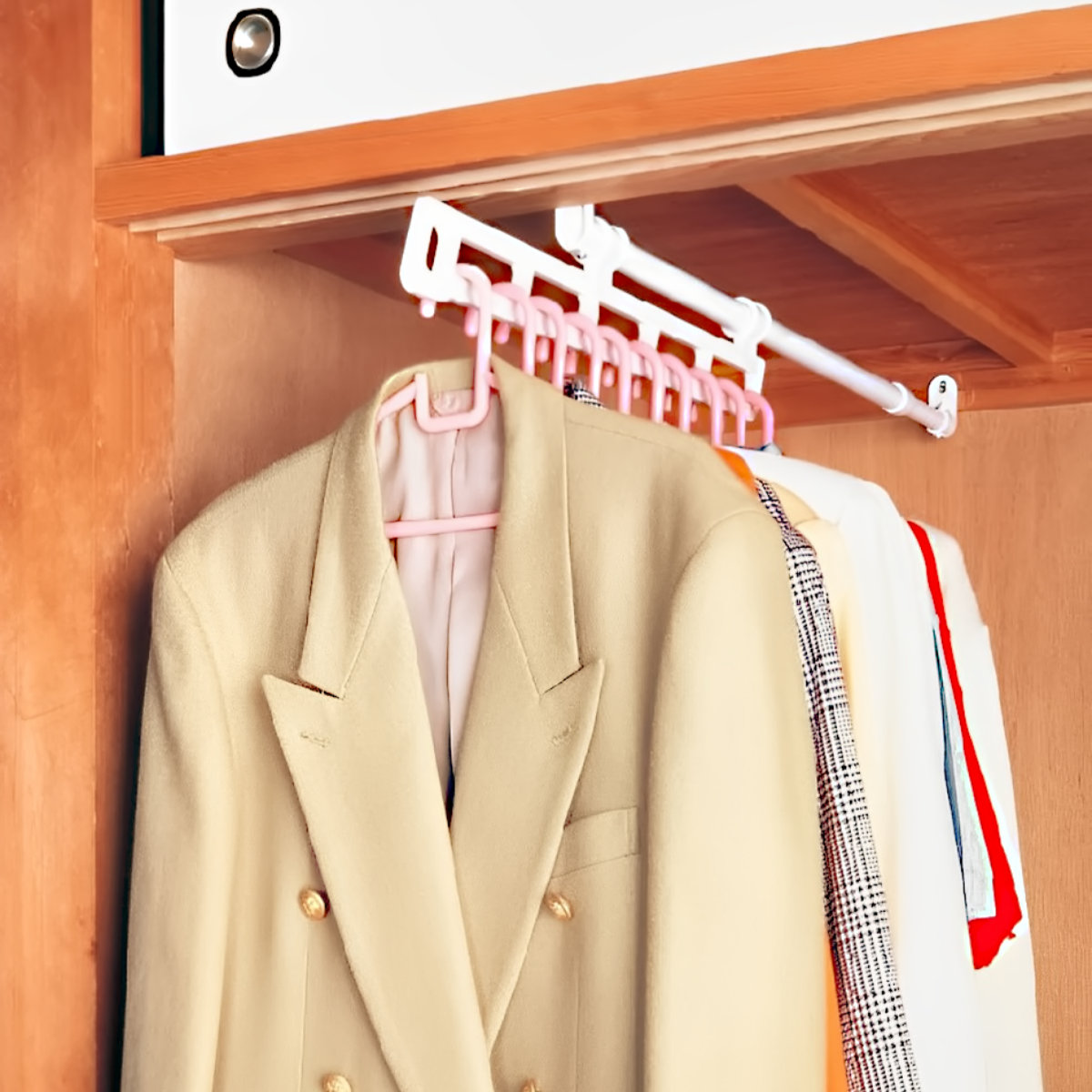 ●衣類を掛けてスライドできるハンガーパイプで、洋服が便利にすっきり収納できます。