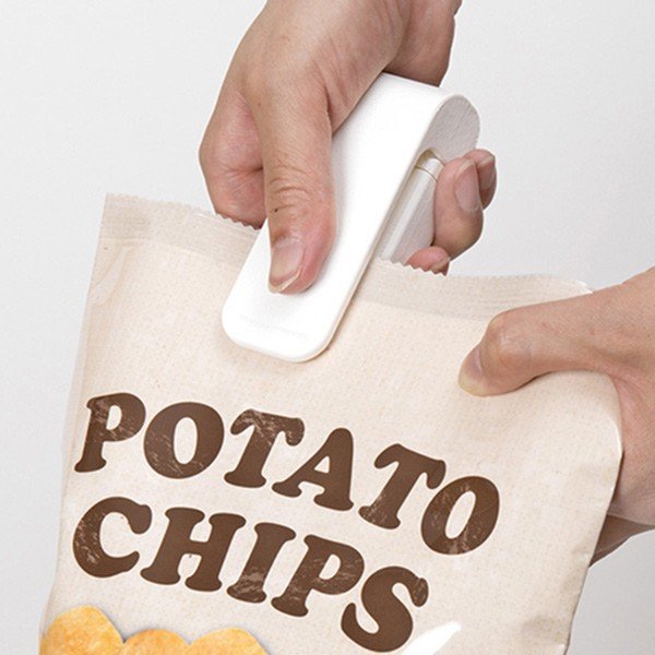 熱で袋をピタッと閉じる!熱で袋を閉じることができるヒートシーラーです。食べかけのスナック菓子や野菜など、湿気を防いで保存するのに大活躍します。