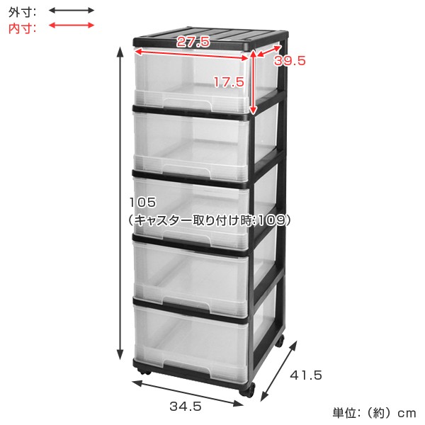 | サイズ | 約 幅34.5×奥行41.5×高さ105(cm) ※キャスター取り付け時の高さは、約109cmです。 引出し内寸:約 幅27.5×奥行39.5×高さ17.5(cm) |