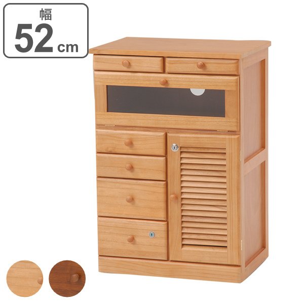 | 可動棚付き 扉付きの収納の棚は置く物の高さに合わせて、3cmピッチで3段階に調節できます。 | 引出し収納 6杯の引出し収納があるので細かい小物もすっきり整理できます。 |