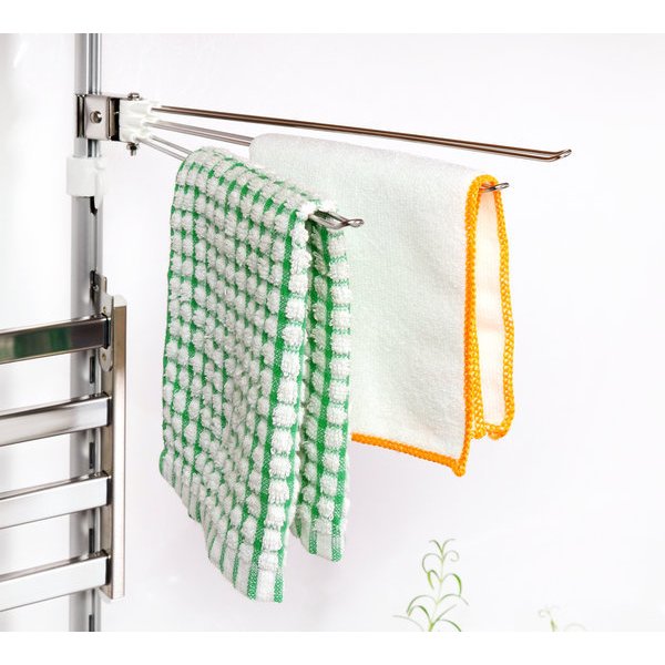 ネジで絞めて簡単に付けられるふきん掛けです。タオルをかける3本のバーは180度回転し、好きな角度にしておけます。