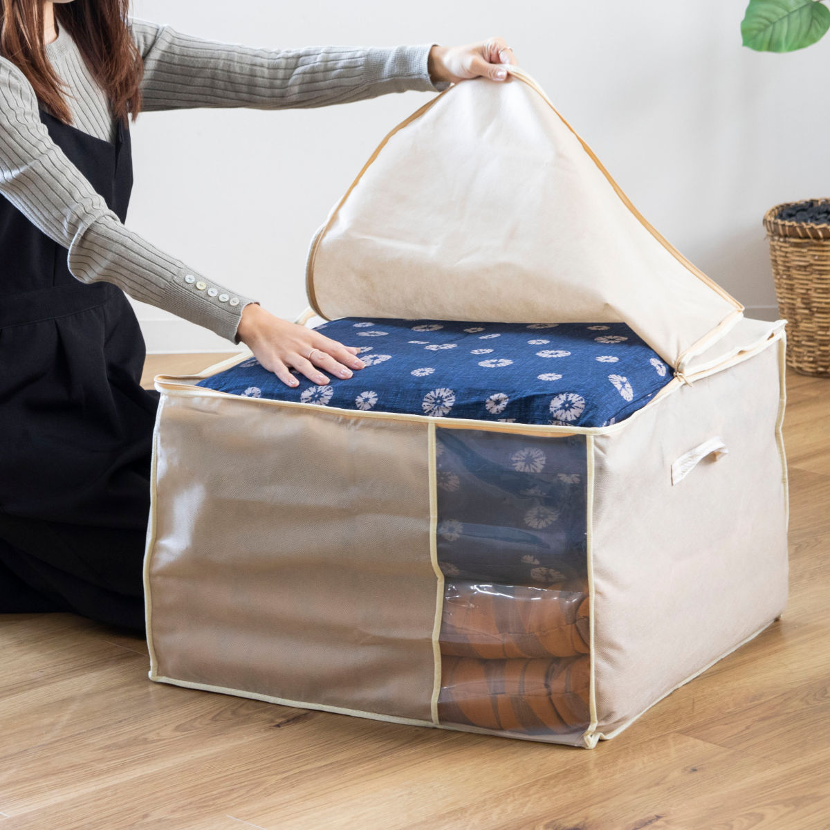クッション 袋 衣類収納 押入れ収納 クローゼット収納 透明窓付き 不織布 押入れ クローゼット 便利 中が見える 収納ケース 収納バッグ 用品 無地 シンプル ベージュ 持ち運び 棚上 衣替え 来客用 季節物 シーズンオフ 保管 便利グッズ 便利用品 人気 おすすめ オススメ LH952