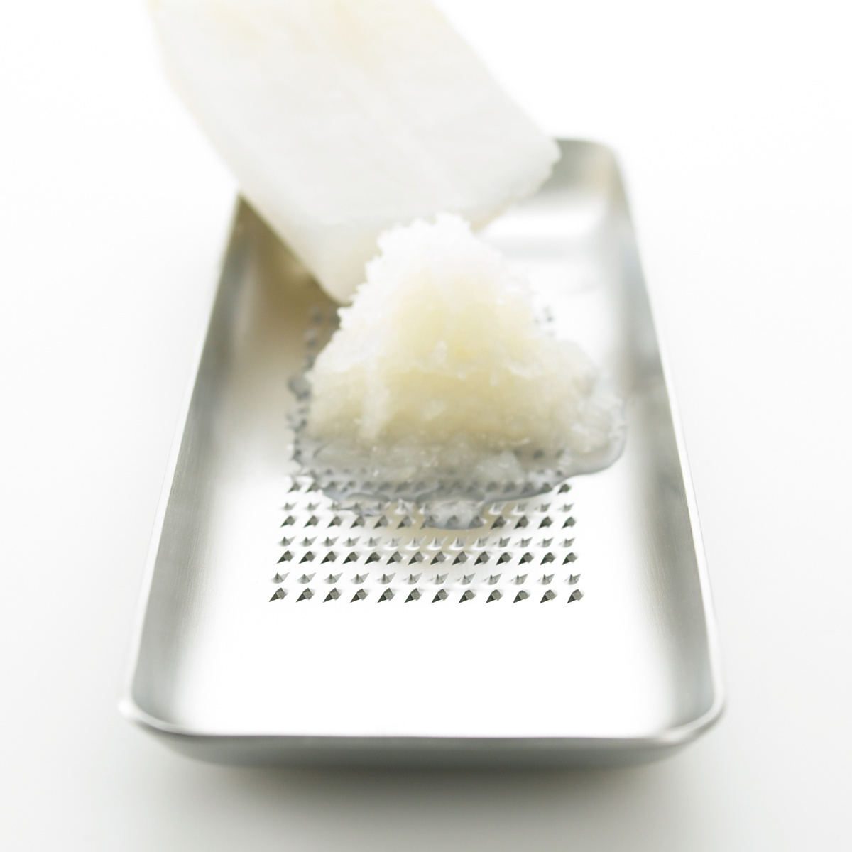 そのままテーブルに出せる、洗練された角型フォルムのおろし金