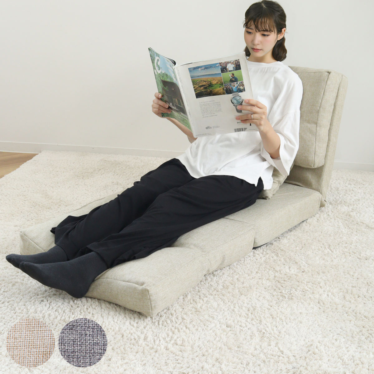 座面を広げると足元ひろびろのカウチソファに様変わり。背もたれの角度を細かく調節できるので、読書や映画鑑賞などさまざまなシーンで使えます。