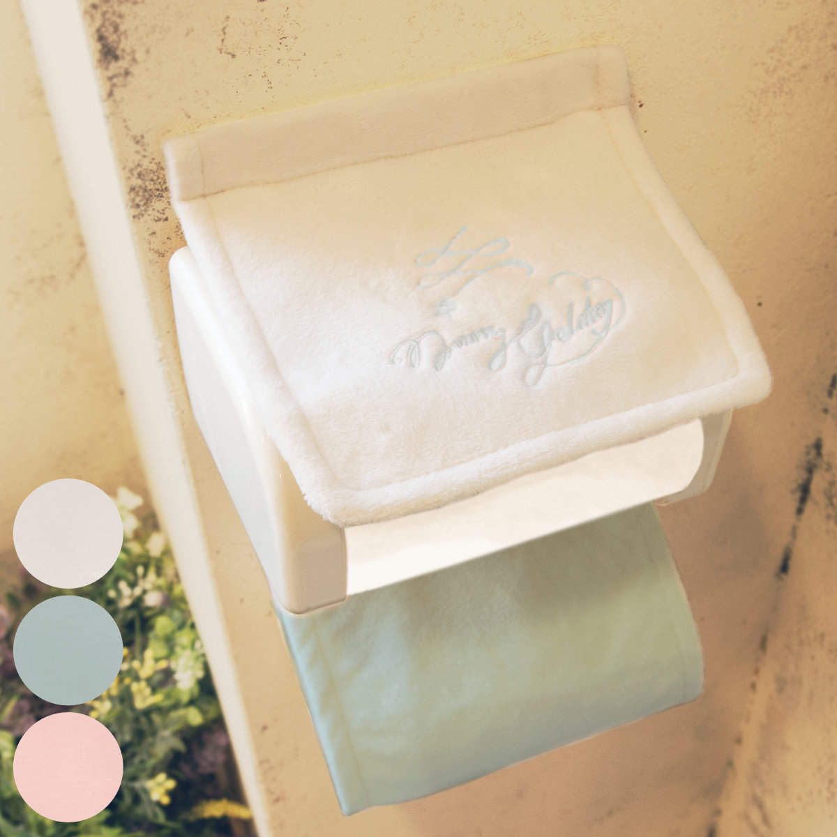 おとなパステルの上品な印象を演出●しっとりとした、手触りの良い生地のペーパーホルダーカバーです。