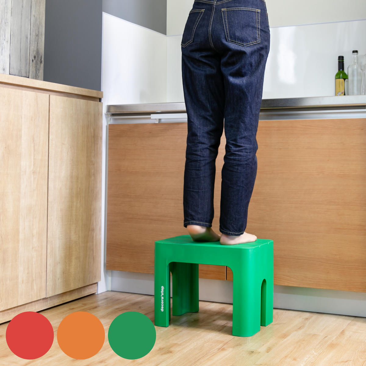 耐荷重100kgのデコラステップは、軽いのにしっかりとした造りの丈夫な踏み台です。キッチンやリビング、洗面所や玄関など、家中で幅広く活躍します。しっかり高さのあるトールサイズは、手の届きにくい高いところの物を取るのに便利です。
