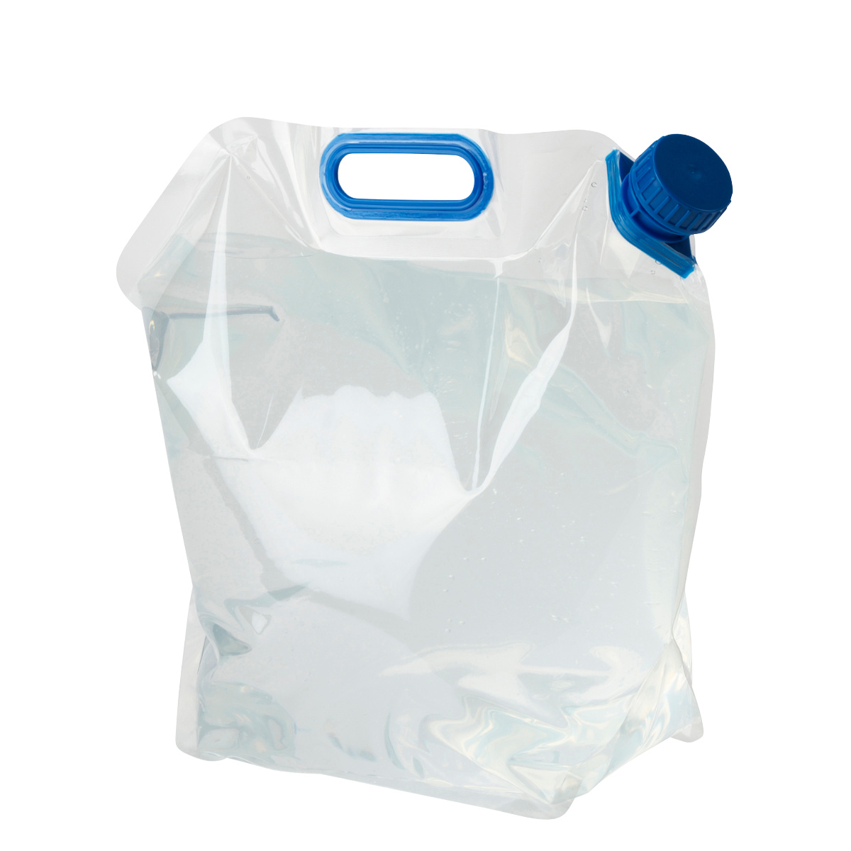 飲料水を持ち運ぶのに便利な水タンク 6L取っ手が付いているので持ち運びに便利です。底にマチが付いているため、水を入れると自立します。使わない時は空気を抜くとコンパクトサイズになるので、収納場所に困りません。