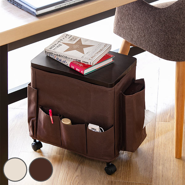 デスク下 ポケット付き マガジンラック ナイトテーブル 収納 大容量 A4 机 座椅子 横 サイド サイドラック ベッド横 ソファ横 こたつ サイドテーブルワゴン メイクワゴン リモコン 雑誌 本 小物収納 整理整頓 A4サイズ 掃除道具 片付け リビング 在宅ワーク リモートワーク ミニワゴン デスクワゴン コンパクト お掃除道具 身支度 メイクボックス ホワイト ブラウン 白 茶 幅 35 奥行き 20 高さ 40 センチ cm