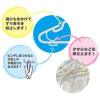 ●肩ひもとめ、タオル押さえ付きなので、ずり落ちを防止します。
