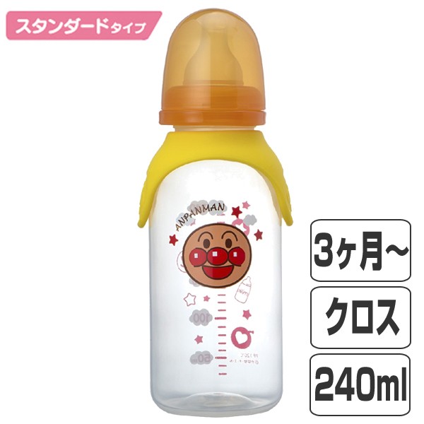 哺乳瓶 スタンダードタイプ 240ml クロスカット プラスチック製 KK-296 アンパンマン キャラクター ( 哺乳びん 乳児 ベビー用品 赤ちゃん クロス )