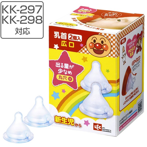乳首 広口タイプ 丸穴カット 替え乳首 2個入り 日本製 KK-297 KK-298 対応 アンパンマン キャラクター ( 替え ちくび 予備 ベビー用品 )