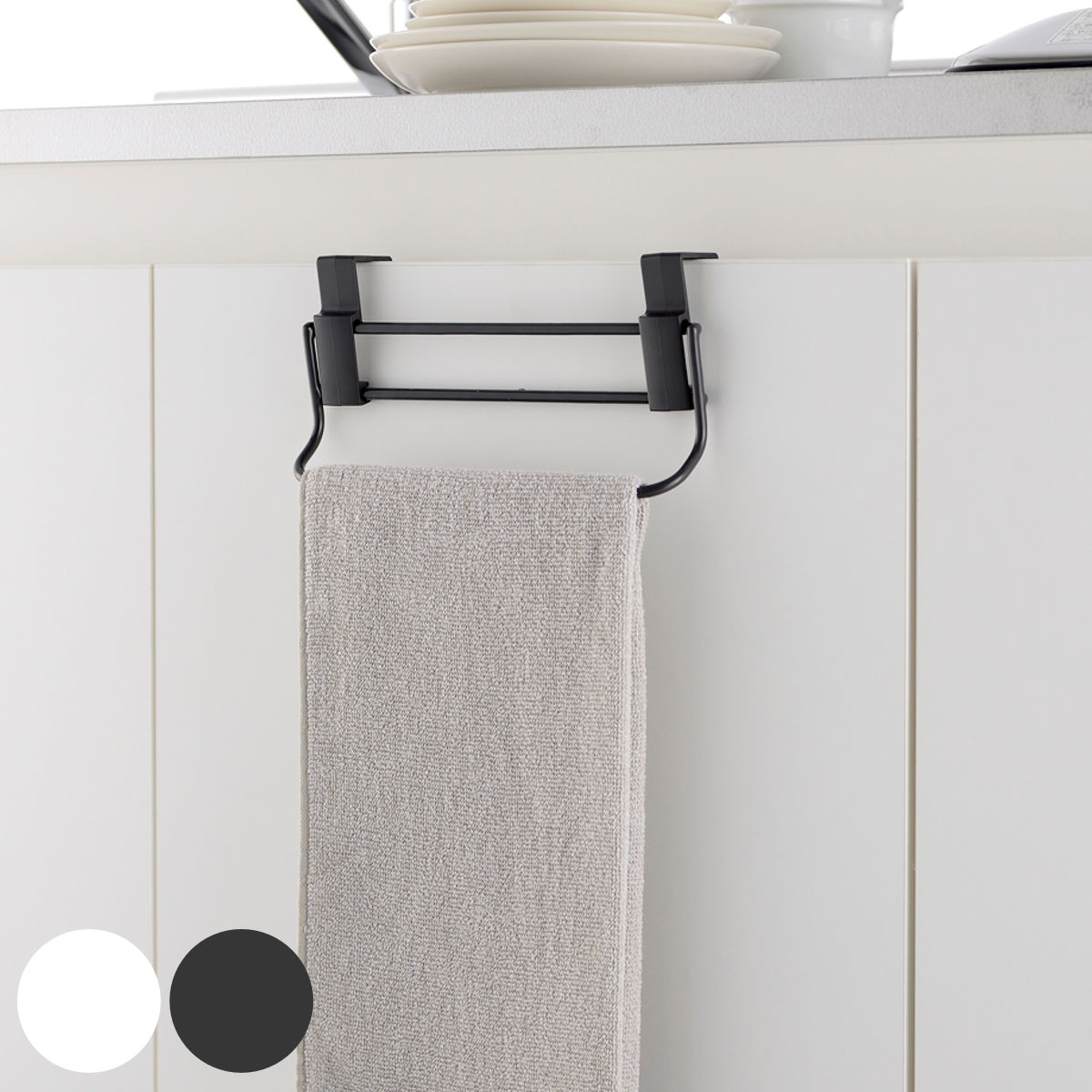 扉にタオルが触れないから清潔に使える●タオルをかけて使用するキッチン扉用のタオルハンガーです。