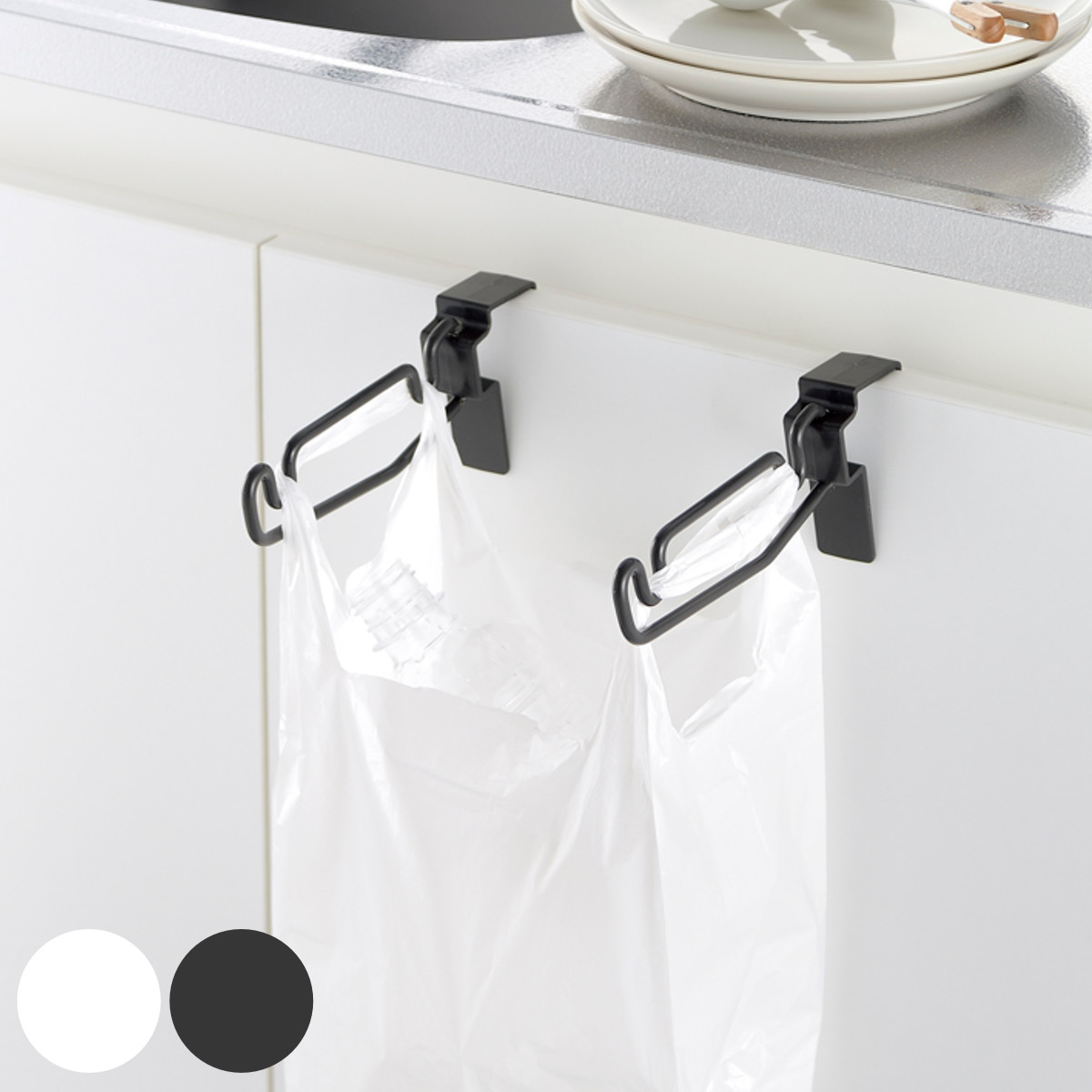 キッチン扉にレジ袋をかけて簡易ゴミ入れに●レジ袋をかけて使用するキッチン扉用の簡易ゴミ入れハンガーです。