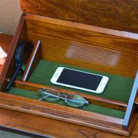 蓋を開けると小物を仕舞える蓋内部には収納機能が備わっているため、読書の際にご使用になられる眼鏡や拡大鏡、筆記用具等を仕舞ってお使いになれます。定位置にされると、探す手間なく素早く取り出せます。