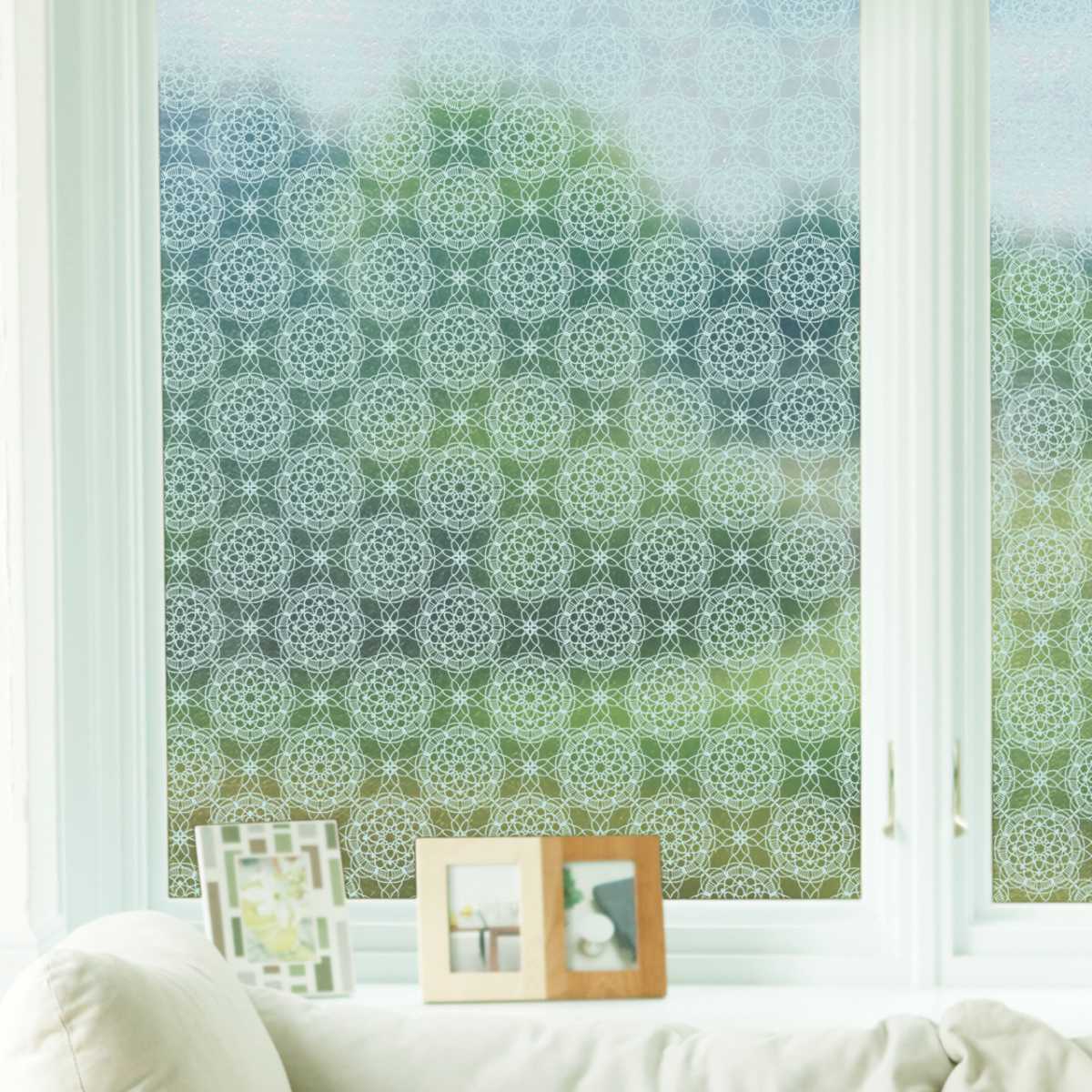 適度な目隠し効果シートは、外から部屋の中が見えにくい、レース柄のデザインです。