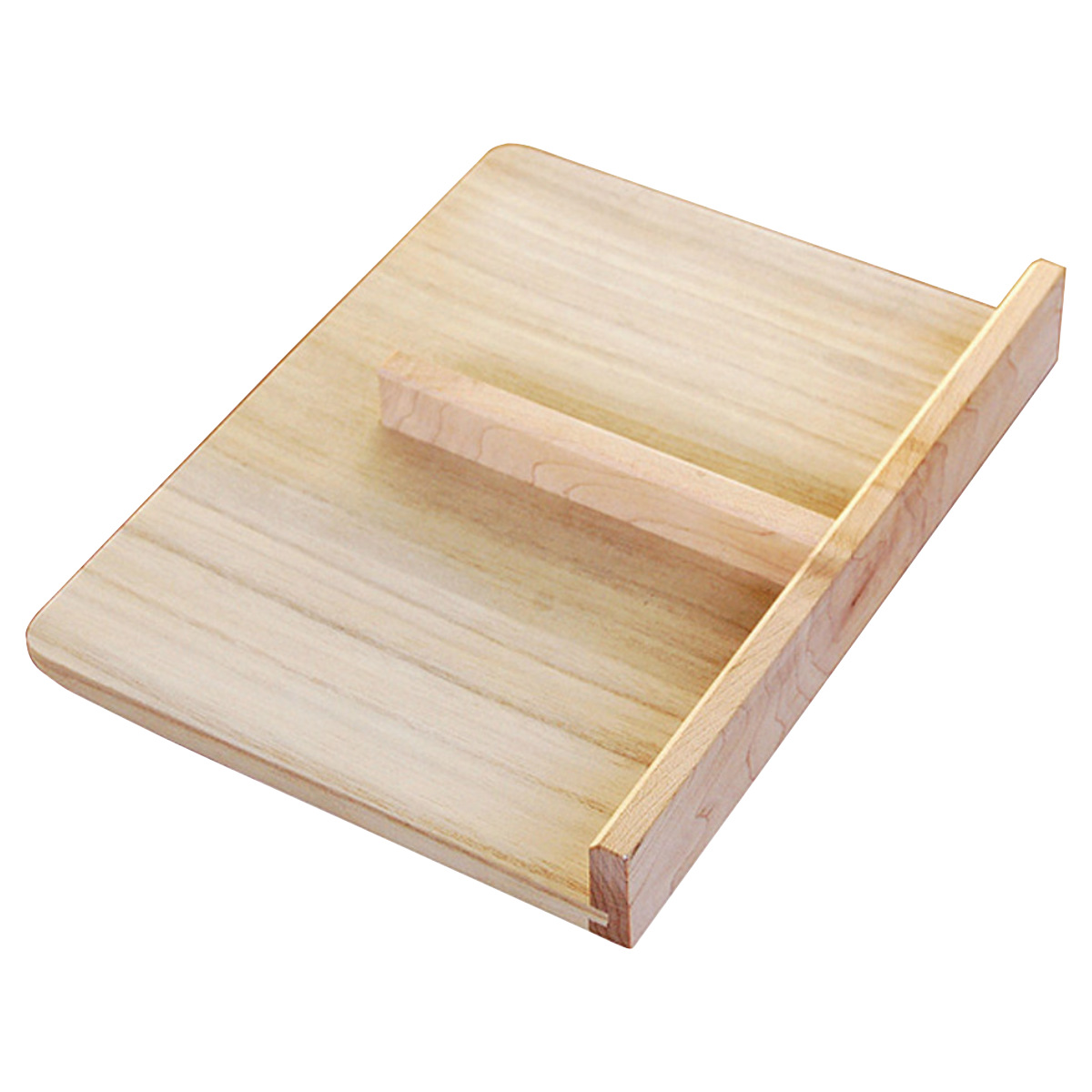 倒し包丁がしやすい斜め枕包丁のあたる部分(枕)には、メープル材を使い、傾斜をつけて機能性をアップしました。倒し包丁で切る方にちょうどいい、斜め枕です。