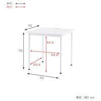 | サイズ | 約 幅70×奥行70×高さ70(cm) 内寸:[足元空間]幅55.8×奥行55.8×高さ64.2(cm) その他:[天板]厚み1.8/切り欠き幅9.4×奥行4(cm) |