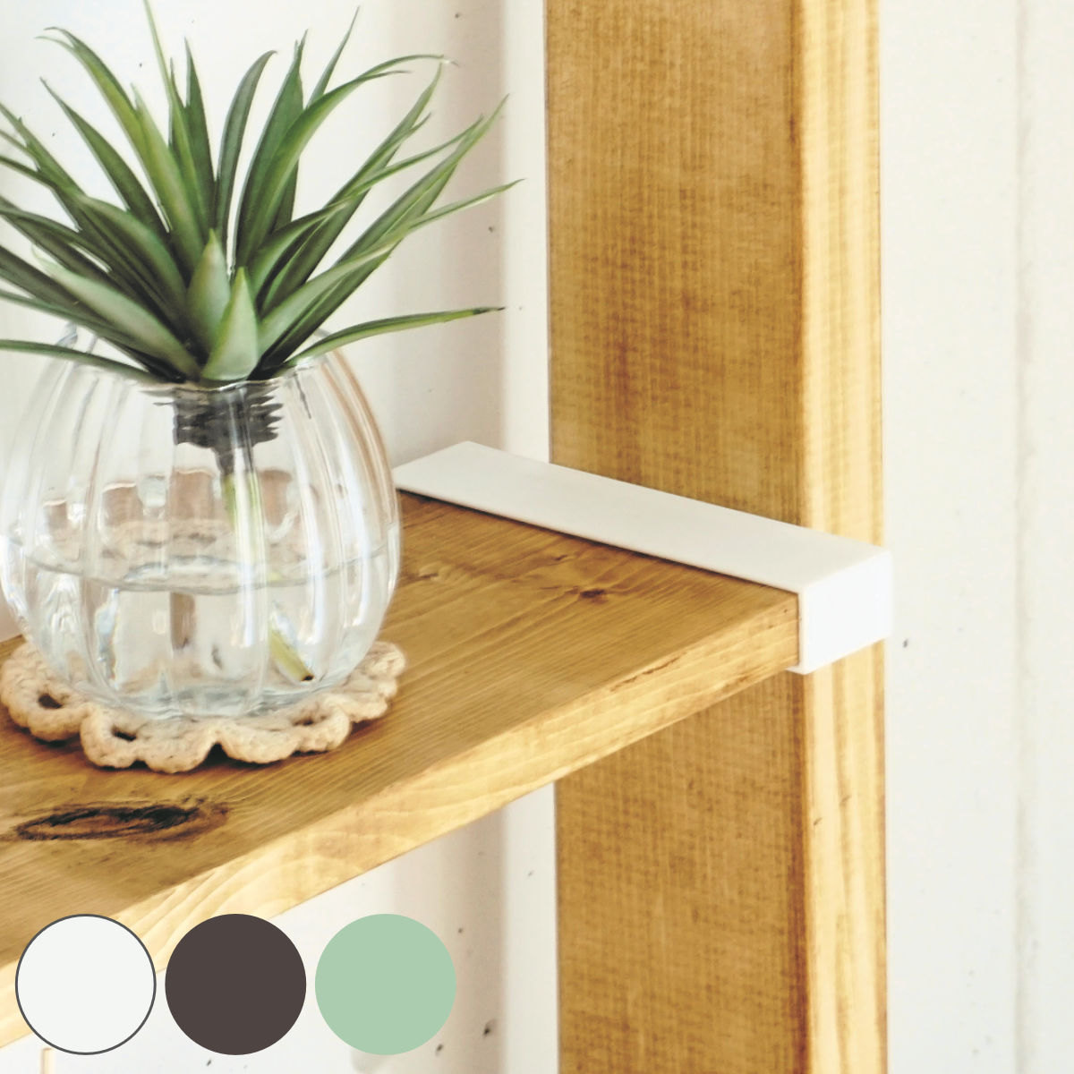 ネジ穴が見えないデザインワンバイ材のスリム感を損なわないシンプルなデザインで、留め具やねじが正面から見えません。お部屋のインテリアにもスッキリ馴染みます。