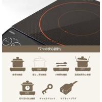 | 備考 | 【機能】 タイマー機能(1分〜9時間59分)、加熱モード、揚げ物モード、煮込みモード、保温モード、鍋なし探知機能、小物探知機能、温度過昇防止機能、切り忘れ防止機能、チャイルドロック機能、マグネットプラグ 電源コード:約190cm 電源:AC100V、50/60Hz 定格消費電力:200W 加熱調理:200、400、600、800、1000、1200W(6段階) 揚げ物調理:150、160、170、180、190、200W(6段階) |