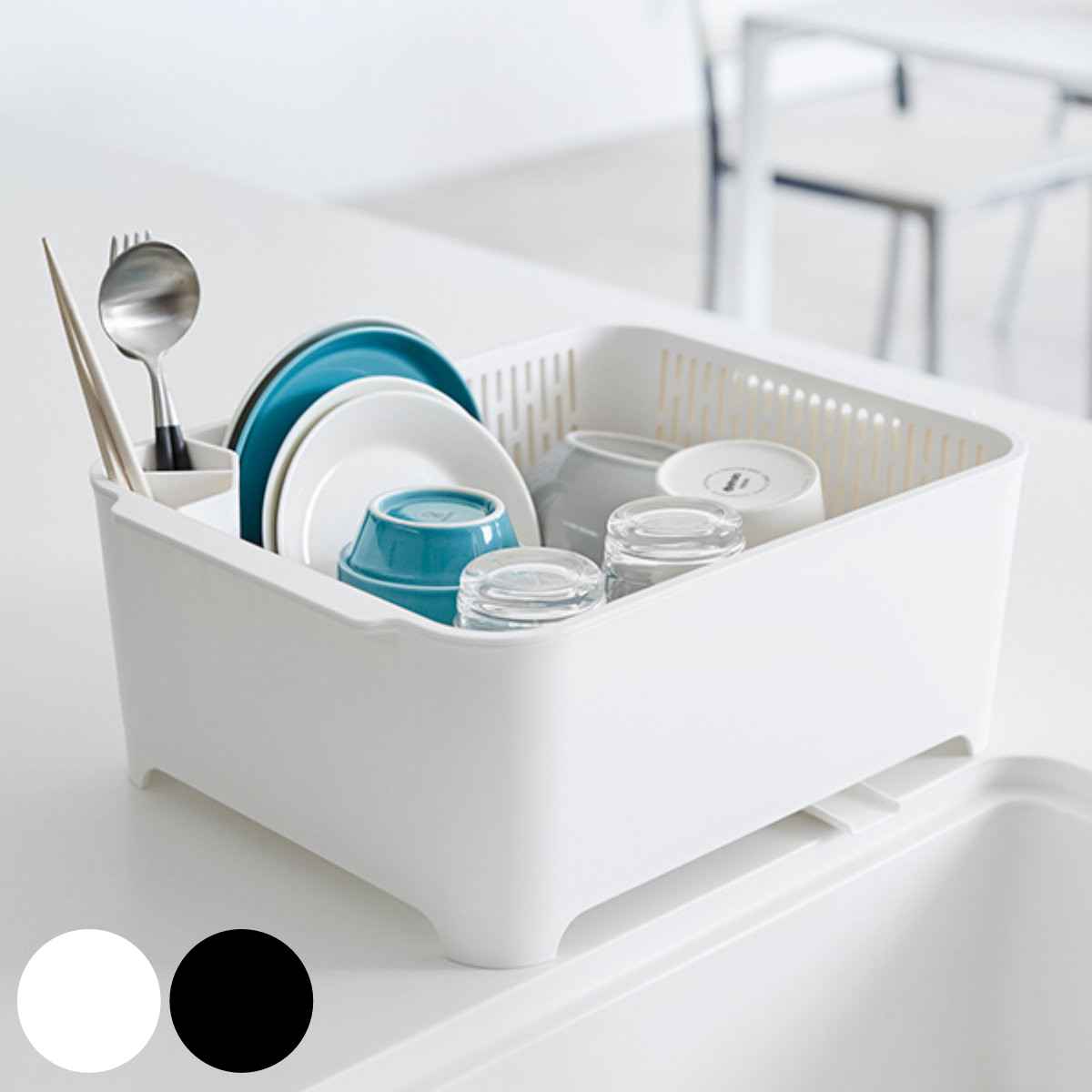 シンク 食器 カトラリーポケット付き ディッシュラック 排水栓付き 浸け置き 4903208035903 大容量 おしゃれ yamazaki シンク上 卓上 水切り籠 箸立て付き 自動排水 水が流れる 止水栓付き つけ置き洗い 漬け置き洗い 洗いおけ あらい桶 食器置き 食器かご キッチン雑貨 キッチン小物 キッチンアイテム 台所用品 キッチン用品 シンプル スタイリッシュ モノトーン オシャレ おすすめ オススメ 便利 役立つ 白 黒 ブラック ホワイト 山実 towerシリーズ 3589 3590