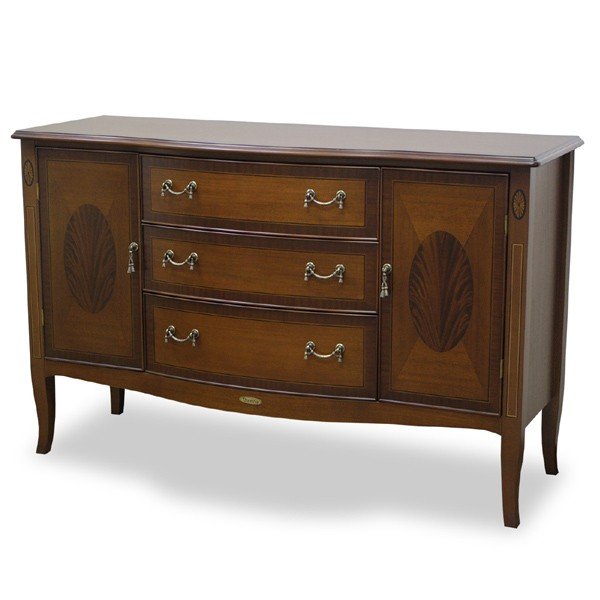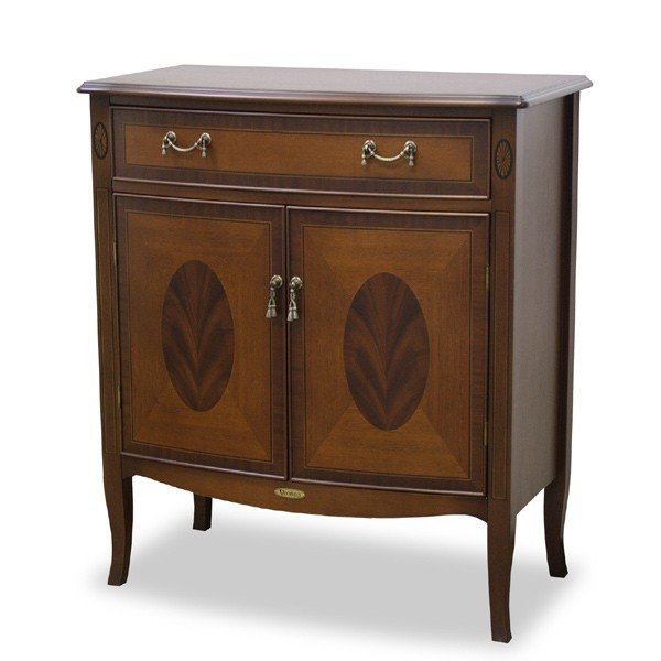 | タッセル模様 引き出しの取っ手には、ヨーロッパ調のタッセル模様が採用され、クラシカルさを強調しています。 | 熟練の職人技術である象嵌細工 材木の表面を彫り込み、色の異なる飾り木を埋め込んで1つの模様を表現する高度な技術が施されています。 |