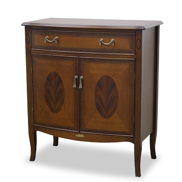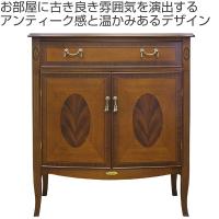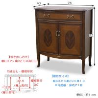 | 熟練の職人技術である象嵌細工 材木の表面を彫り込み、色の異なる飾り木を埋め込んで1つの模様を表現する高度な技術が施されています。 | キュートな猫脚と優美な曲線 通常よりも細い猫脚は柔らかくかわいらしい表情を出しています。また、フロントラインの曲線は上品でやさしい印象を与えてくれます。 |