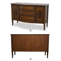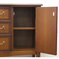 | 熟練の職人技術である象嵌細工 材木の表面を彫り込み、色の異なる飾り木を埋め込んで1つの模様を表現する高度な技術が施されています。 | キュートな猫脚と優美な曲線 通常よりも細い猫脚は柔らかくかわいらしい表情を出しています。また、フロントラインの曲線は上品でやさしい印象を与えてくれます。 |