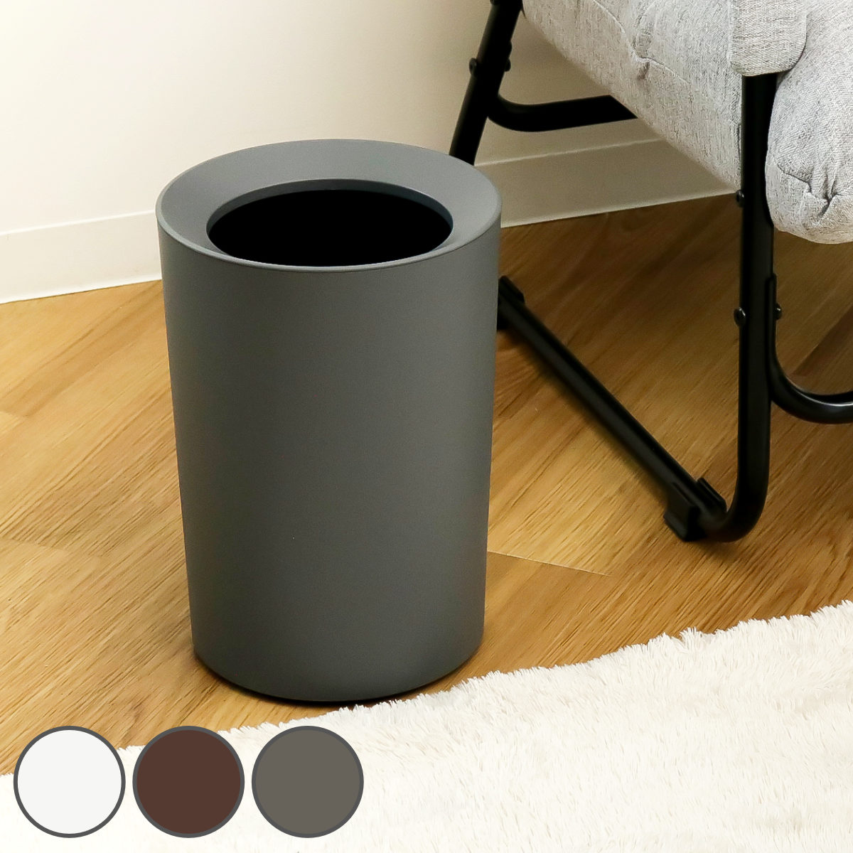 カバー部分がマットな質感で、フタの無いシンプルなデザインです。投入口が大きく開いているので360度どの方向からでも捨てやすく、離れた所からでもポイっと捨てることができます。