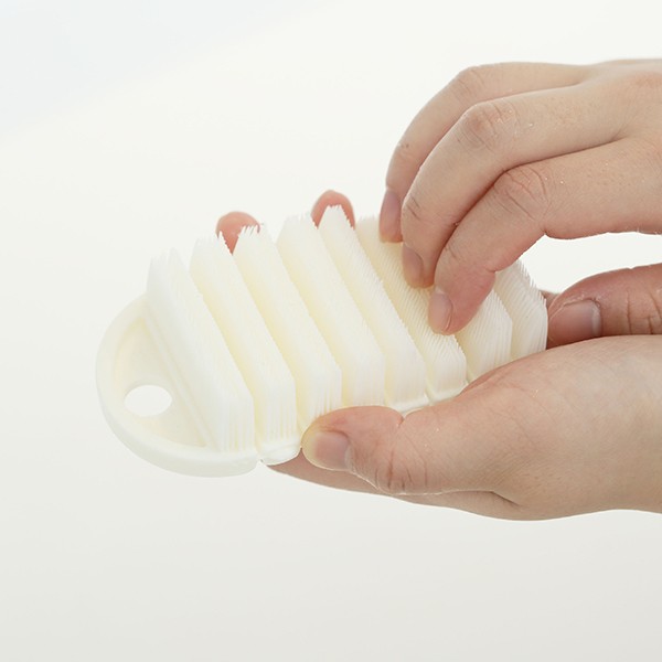 曲がりやすく手指にフィット!爪や指先もしっかり洗える●手全体や爪の中、指の間などの汚れを無理なく優しく洗えます。