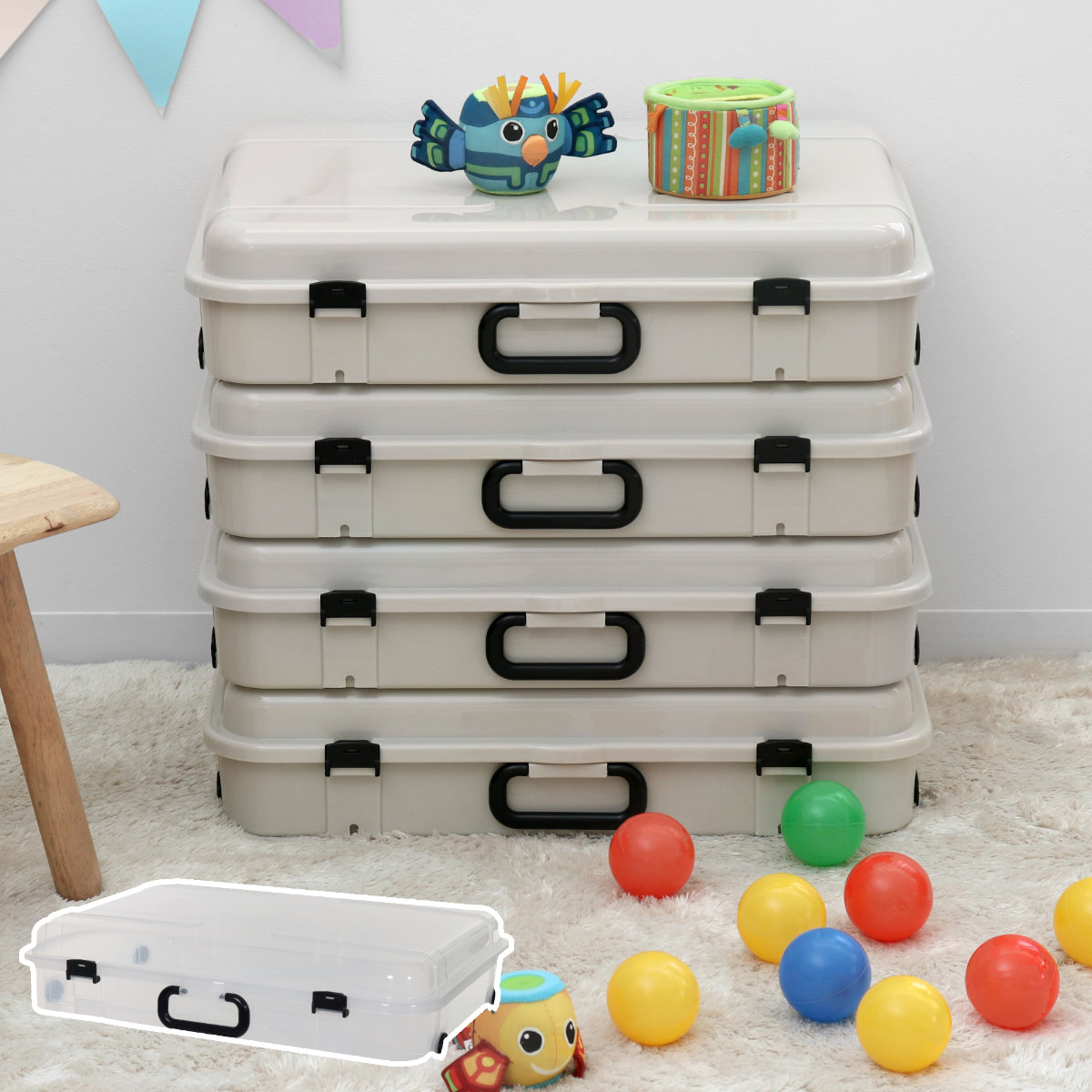 【かさばるおもちゃ収納に】プラレールなどのパーツが多いおもちゃは収納するのも大変。レールや車体をまとめて収納しておけば、ケースごとお子さまが好きな場所に持ち運んで遊べて便利です。