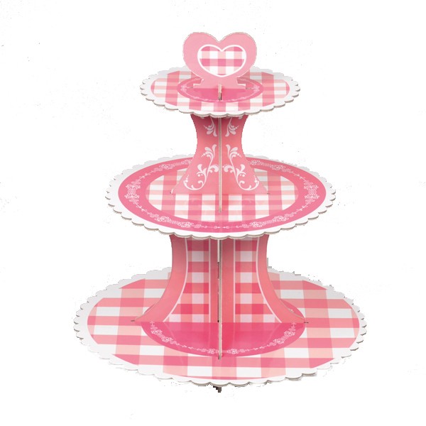 ケーキスタンド 3段 ピンク カップケーキ スタンド パルプ製 組立式 ( ケーキ デザート デザートスタンド カップケーキスタンド )