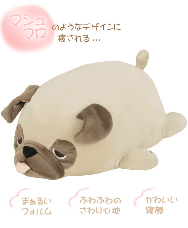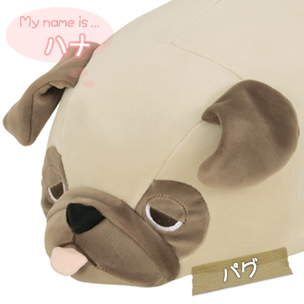 「しっとり&もっちり」極上の抱きごこち●パグのハナをモチーフにした可愛らしいデザインのボルスタークッションです。