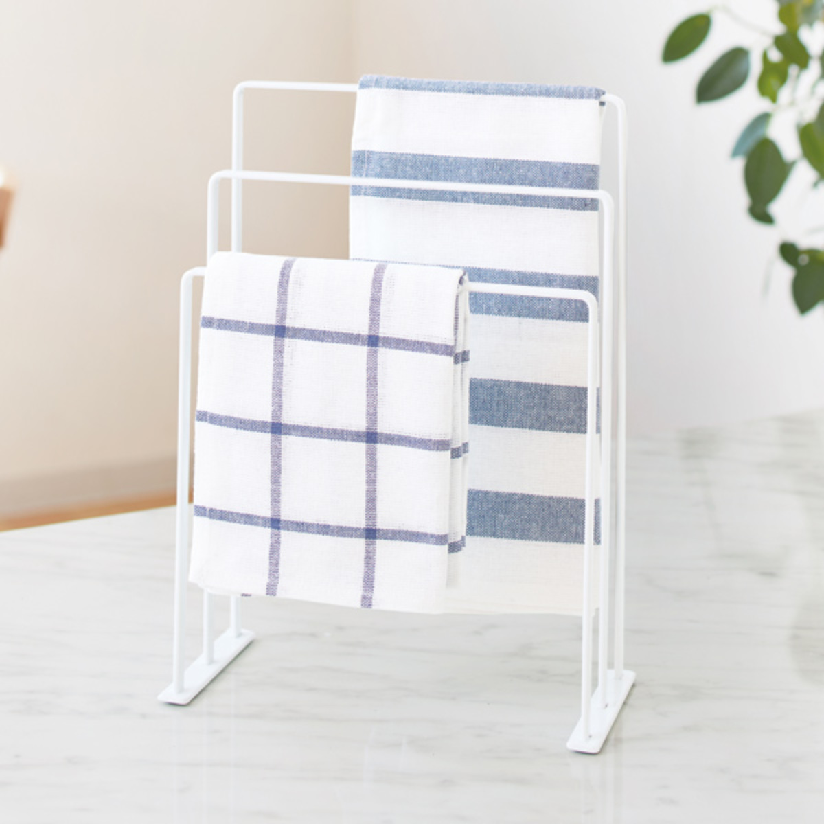 シンプルデザインのスタンドで、ふきんを風通しよく掛けられます。