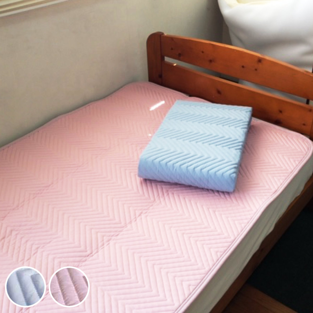 細かいキルティングの洗えるベッドパッド●寝汗からベッドマットを守ってくれる快適な寝心地のベッドパッドです。