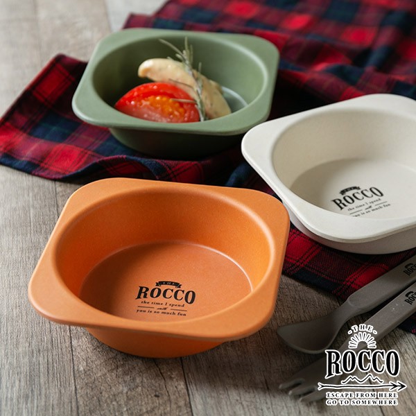 | 軽くて持ちやすい 竹(バンブーファイバー)素材でできているので割れにくくて軽いです。 またフチがあるので持ちやすいです。 | ロゴ入り ROCCOのしゃれなロゴ入りでアウトドアにぴったりです。 |