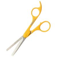 刃先が丸く安全にカットできます。刃はクシ刃になっていて細かなV字形状が毛量を調節します。