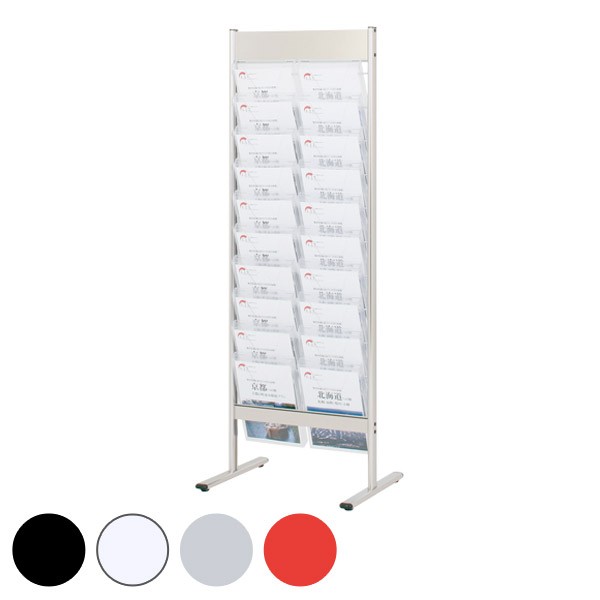 リーフレットなどを陳列する什器です。サイズは2列10段(A4判)で組立式です。ラックカラーが4色あり、本体は同色になります。「ご自由にお取りください。」の表示ラベルが同梱されています。ラックの固定にはラックをワイヤーに引っ掛けてご使用下さい。シーンを選ばずオフィスや商業施設、学校や病院など、どんな場所でも使えます。【商品詳細】 サイズ/本体:約幅56×奥行45×高さ154.1cm2列10段(A4判) 表示板:約幅49.4×高さ10cm 重量/約15.8kg 内容量/1台 材質/本体:アルミ押型材・化研ステンカラー ラック:ポリスチレン カラー/ブラック、クリア、グレー、レッド 生産国/日本製 型番/PRC-102-BK、PRC-102-CL、PRC-102-GY、PRC-102-R 備考/装備品:アジャスター、表示ラベル ※カタログ厚み2.5cmまで《送料無料 展示 スタンド ラック 販促 ディスプレイ カタログ 冊子 店舗什器 会社 オフィス 学校 官公庁 店舗 店 待合室 ブラック クリア グレー レッド 黒 赤 クロ アカ LH2957》
