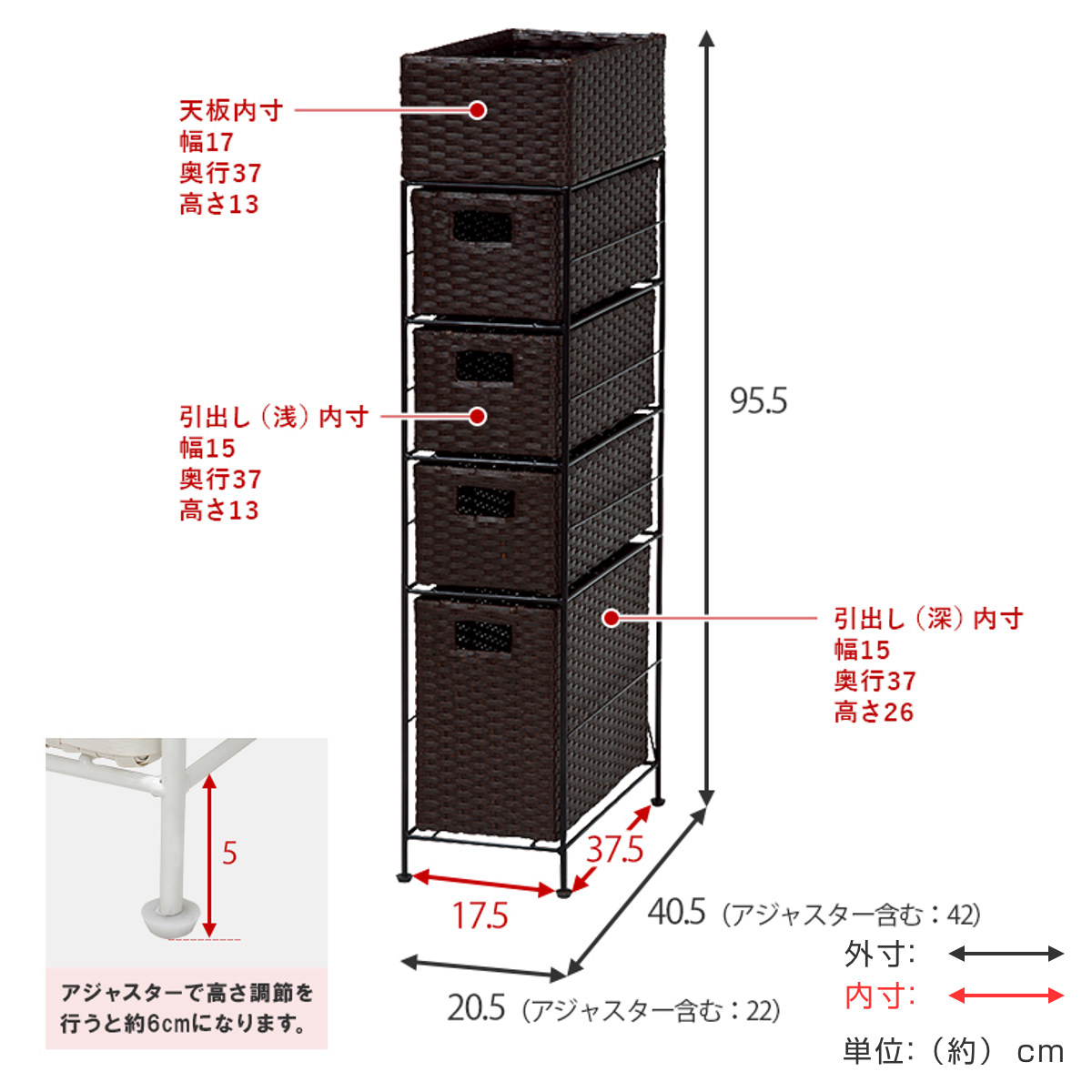 | サイズ | 約 幅20.5×奥行40.5×高さ95.5(cm) |